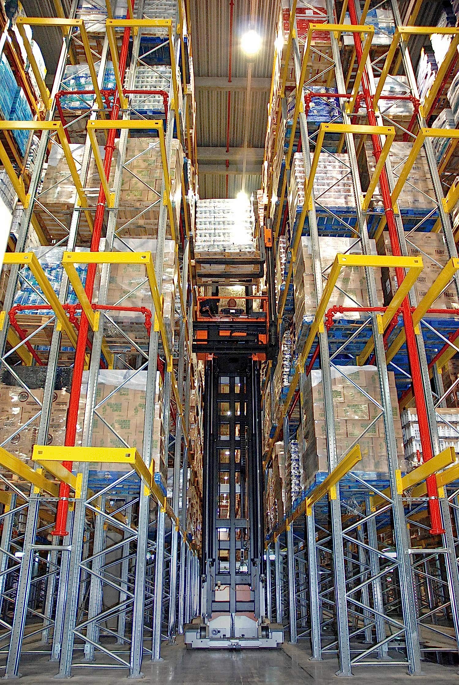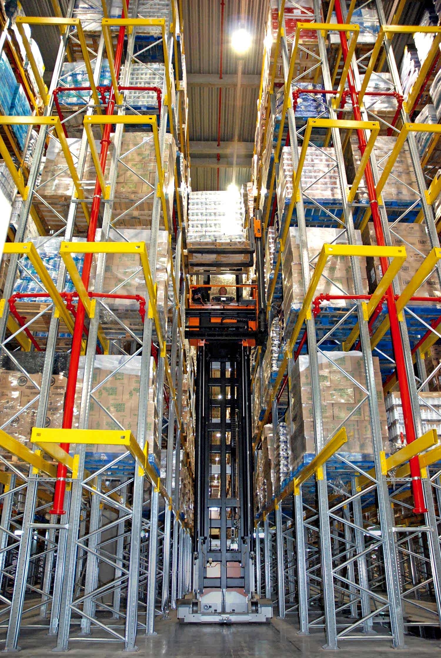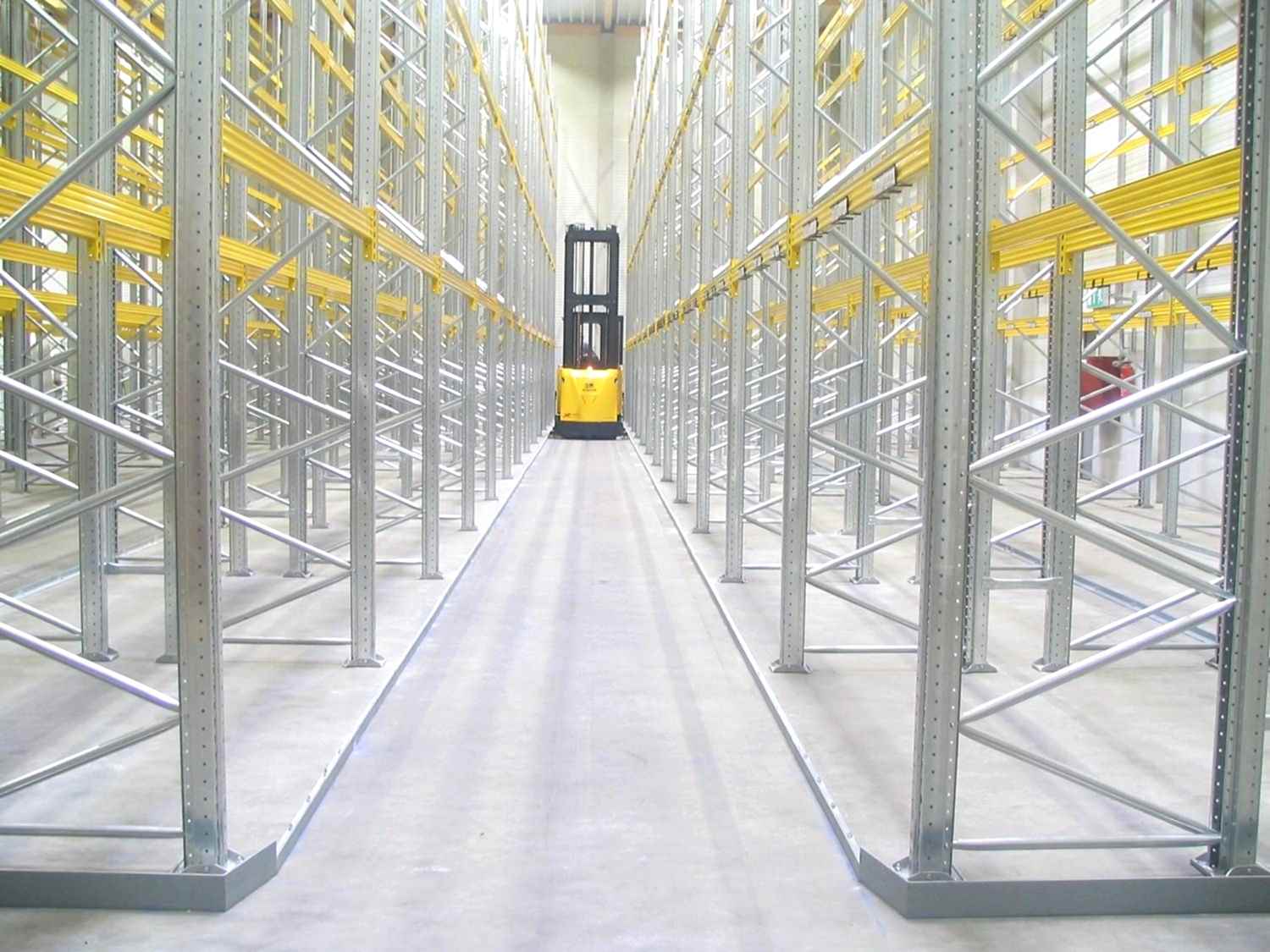 Dar koridor raf sistemlerinde yükseklikten maksimum seviyede faydalanılır. Dar koridorlarda özel yükleme ve indirme aracı kullanılır. Bu araç sayesinde her alandaki yüke rahatlıkla erişilir ve yükleme indirme sağlanır.