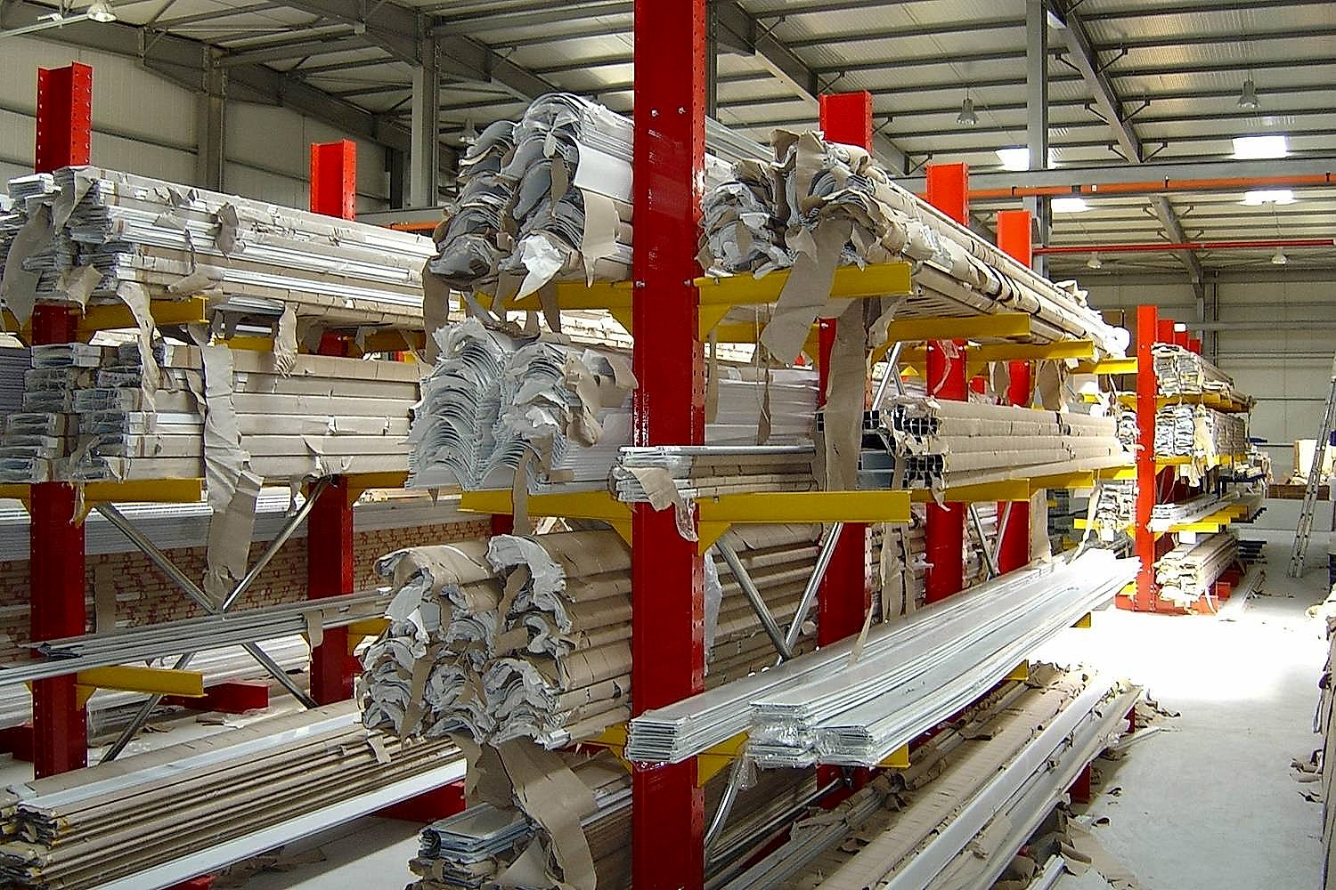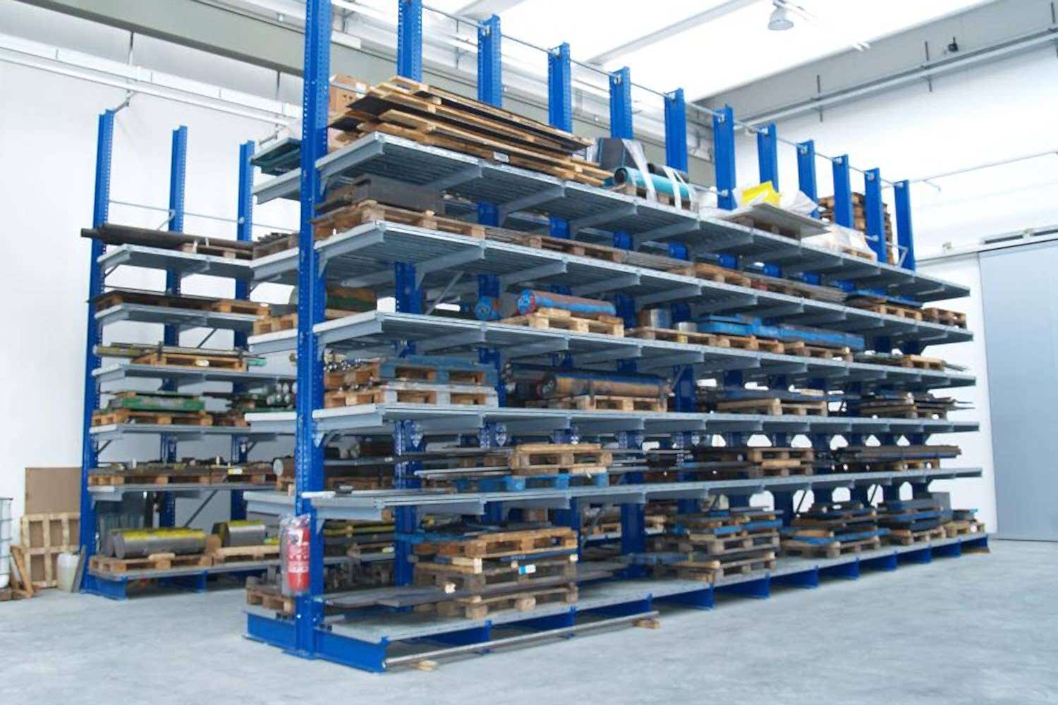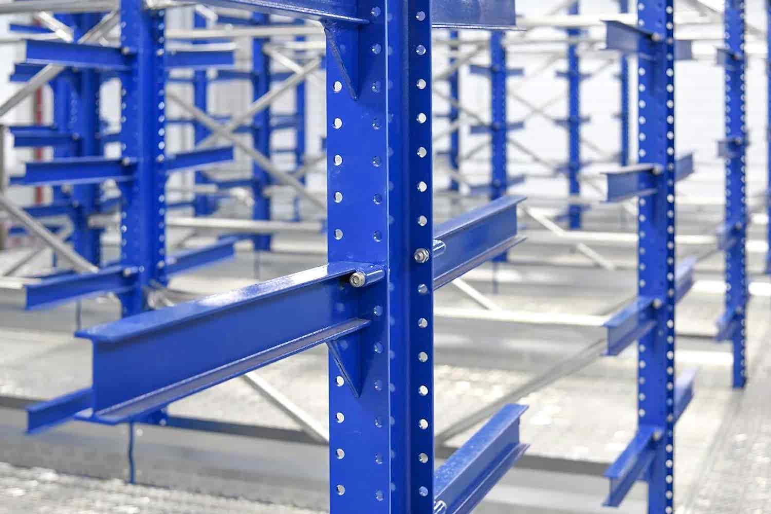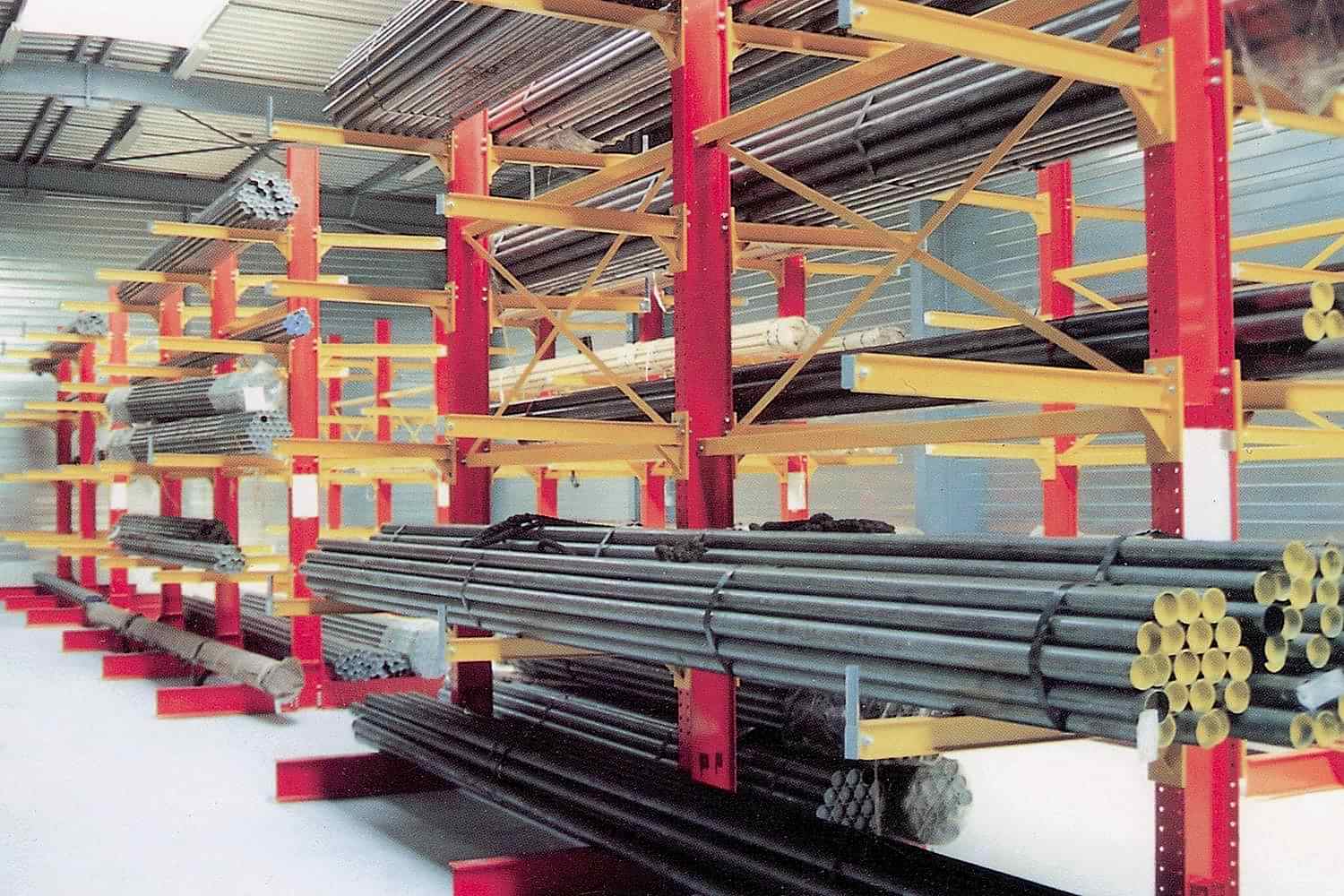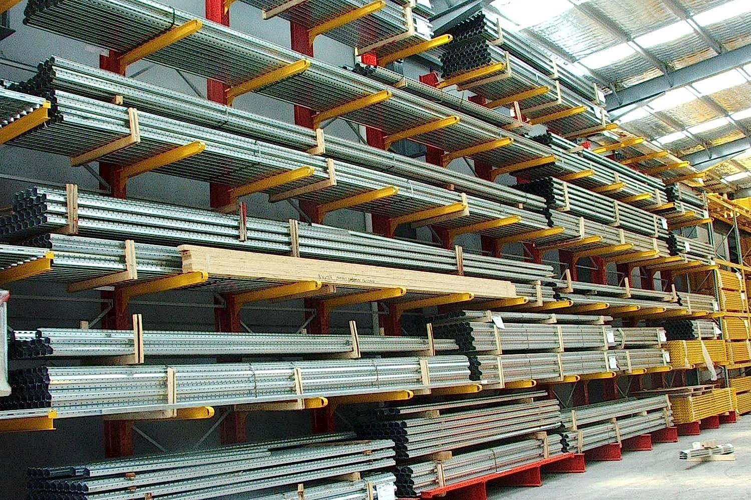 Konsol kollu raf sistemi, farklı ve değişken uzunluktaki ürünlerin nizami olarak depolanması için kullanılır.