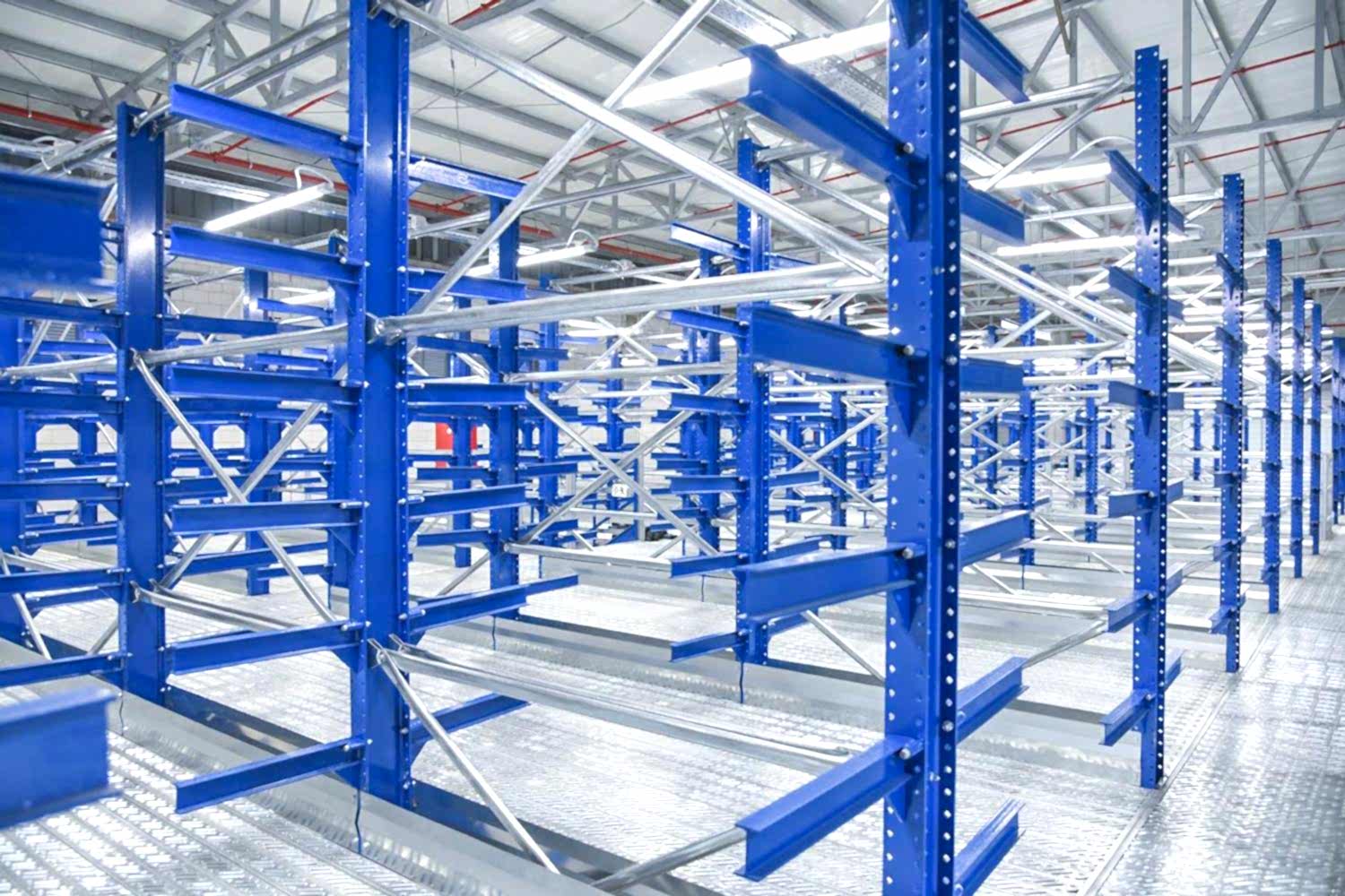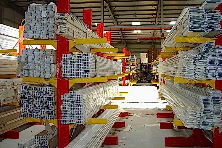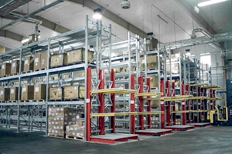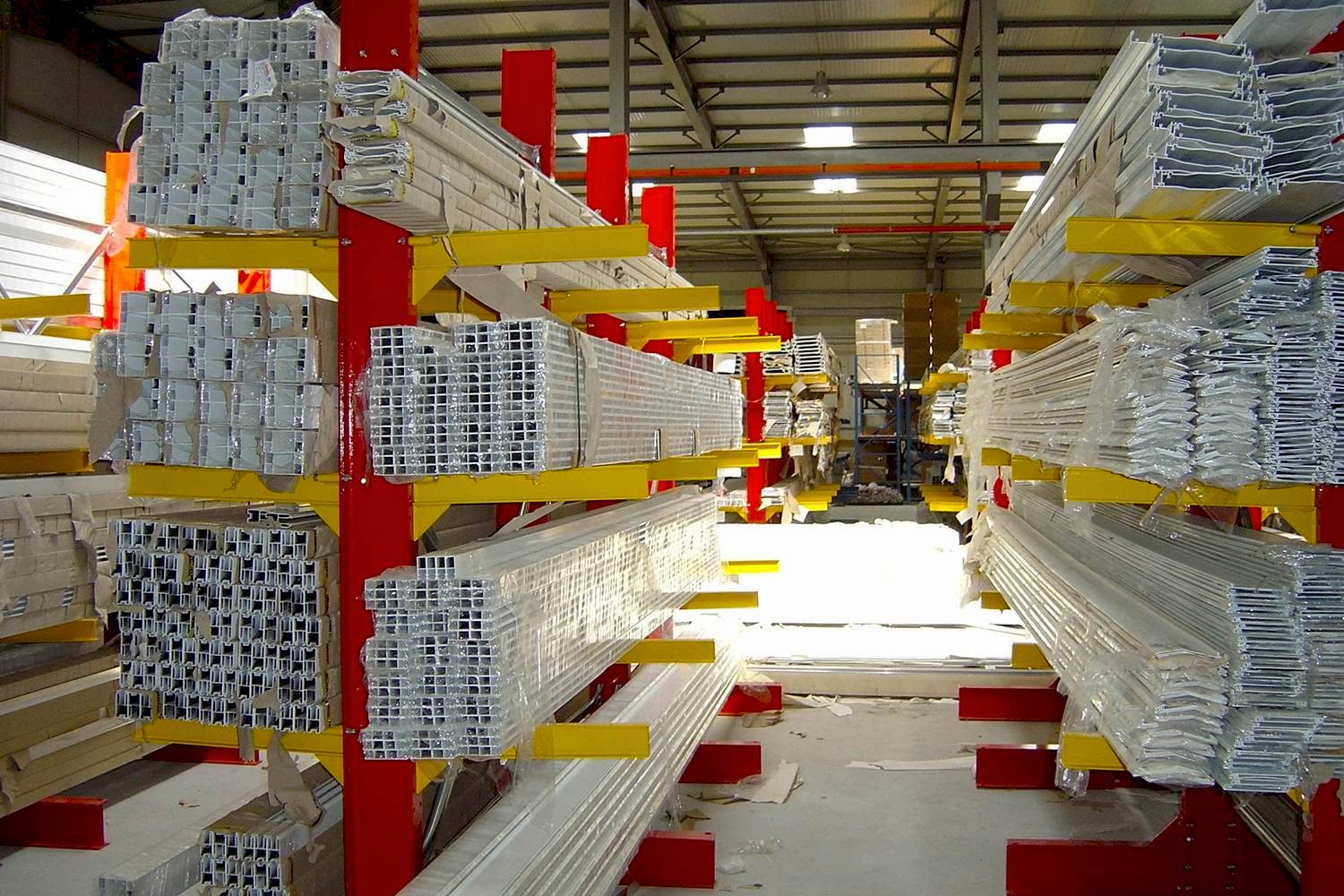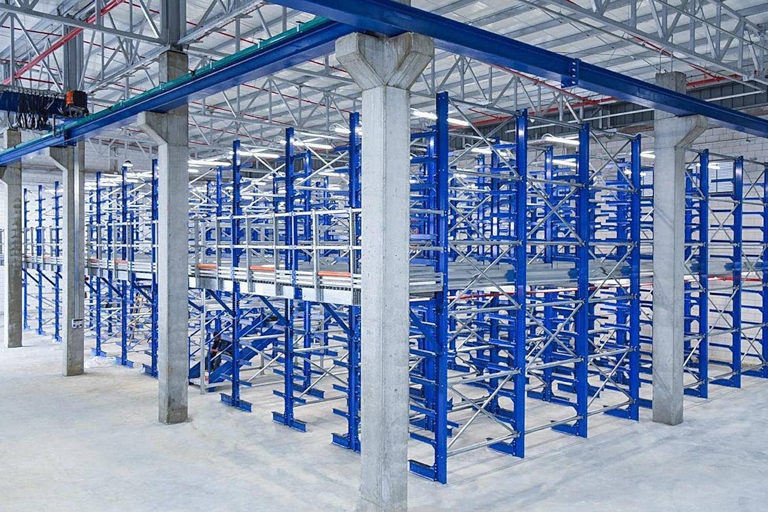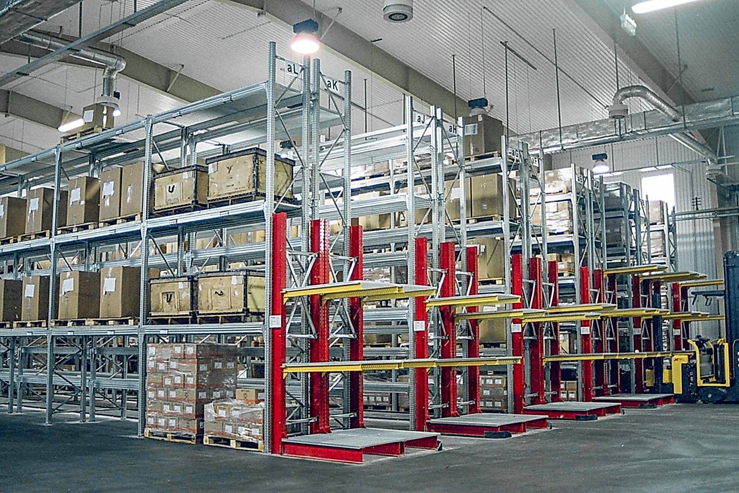 Konsol kollu raf sistemi, farklı ve değişken uzunluktaki ürünlerin nizami olarak depolanması için kullanılır.