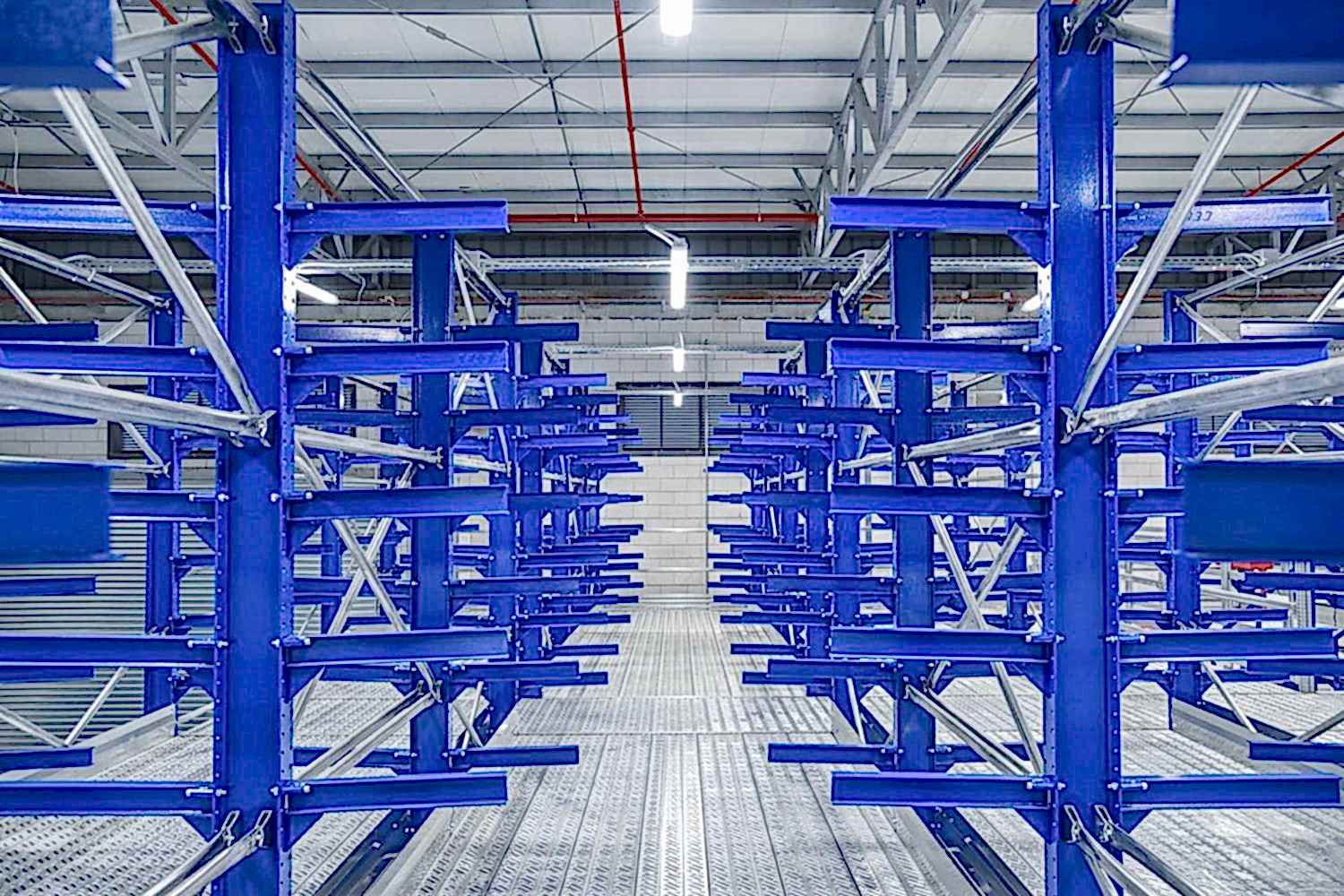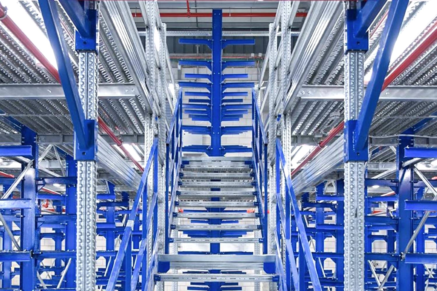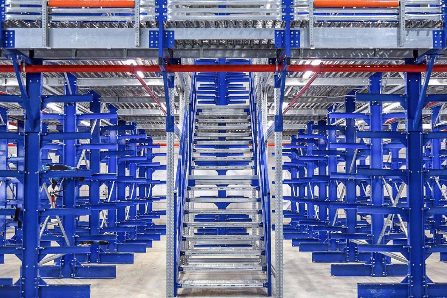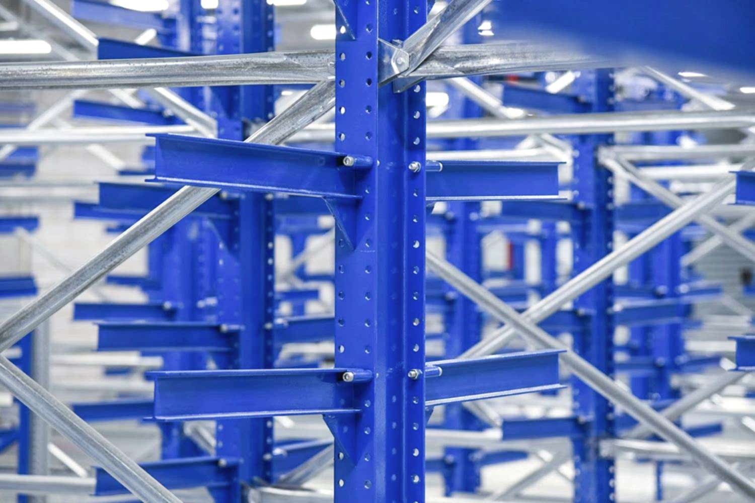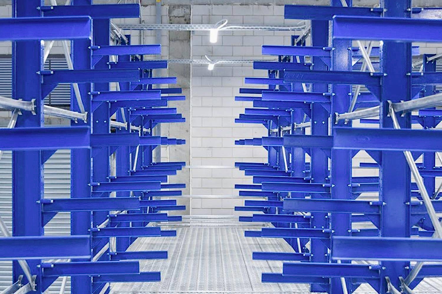 Konsol kollu raf sistemi, farklı ve değişken uzunluktaki ürünlerin nizami olarak depolanması için kullanılır.