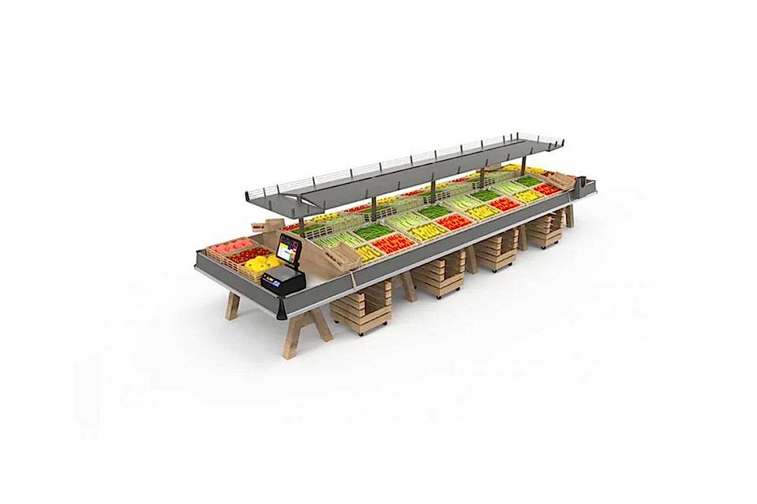 Görsel çekicilik önemlidir. Renkli, düzenli ve temiz bir tasarım, müşterilerin ürünlere ilgisini çekebilir. Farklı büyüklükte ve türde raflar, meyve ve sebzelerin farklı türlerine uygun bir sergileme sağlar. Üniteler genellikle ürünleri tanımlayan etiketler veya fiyat etiketleri için uygun alanları içerir.