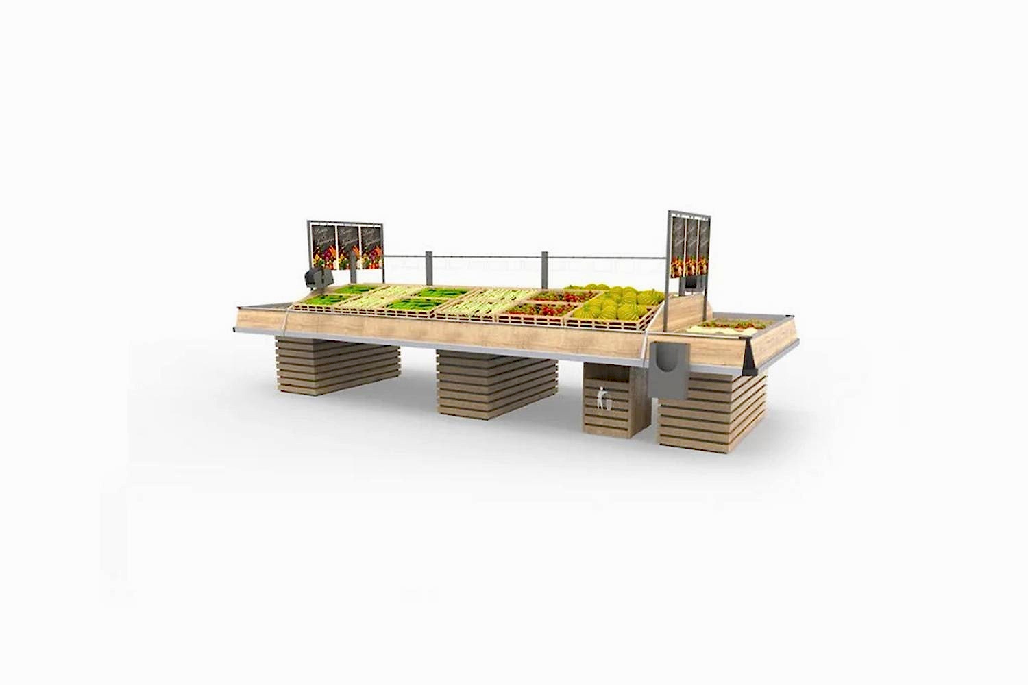 Meyve & Sebze Üniteleri genellikle süpermarketler, marketler veya perakende gıda satış noktalarında kullanılan rafları ve teşhir birimlerini ifade eder. Bu üniteler, taze meyve ve sebzeleri sergilemek, düzenlemek ve müşterilere sunmak için tasarlanmıştır.